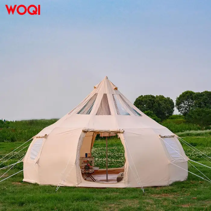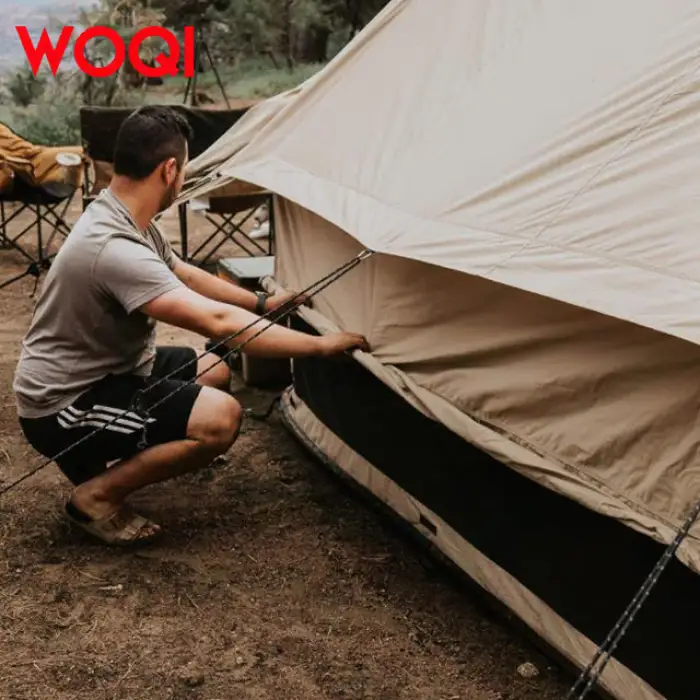 The WOQI tent is designed with durable materials and a sturdy structure, making it capable of withstanding moderate wind conditions. However, it's recommended to take extra precautions in extreme weather.