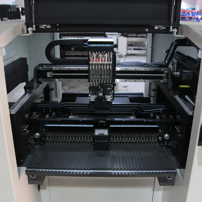 The vertical vision system, combined with the built-in camera, allows for accurate alignment and placement of components on the PCB.