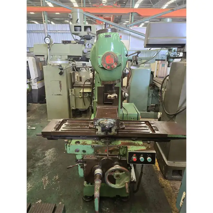 Key features include high precision with 3-axis control, heavy-duty construction, variable spindle speed, and a large table size.