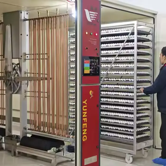 The YFDF-1152 incubator can hold up to 115,200 eggs.