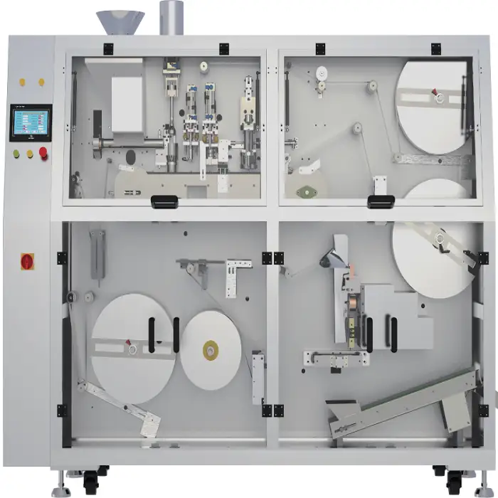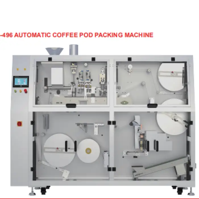 This machine is ideal for coffee pod packaging and is also suitable for various food and beverage products.