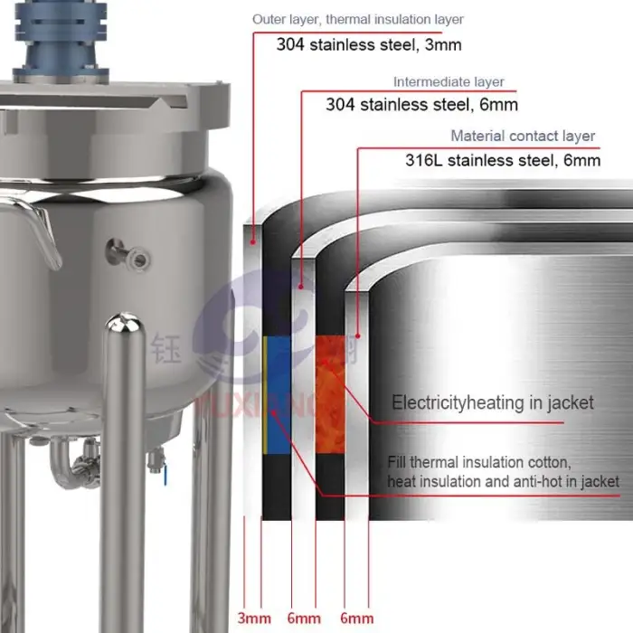 The mixer is made from high-quality stainless steel, specifically SUS 316/304, ensuring durability and safety.