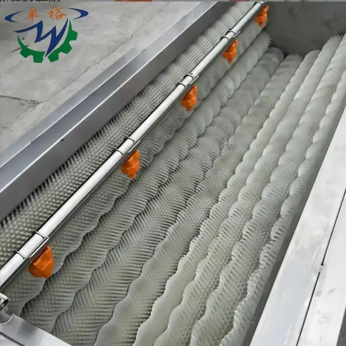 The Zhuoyu Potato Washing and Peel Machine has a capacity of 500 to 2000 kg per hour.