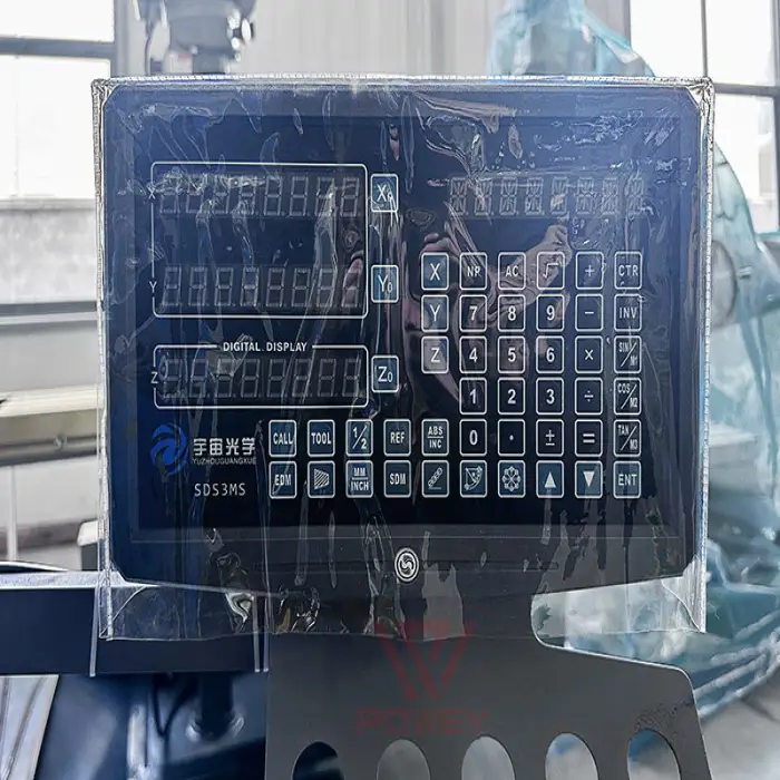 Yes, optional configurations include Y-axis automatic tool feed, electric Z-axis lift, and Digital Readout (DRO).