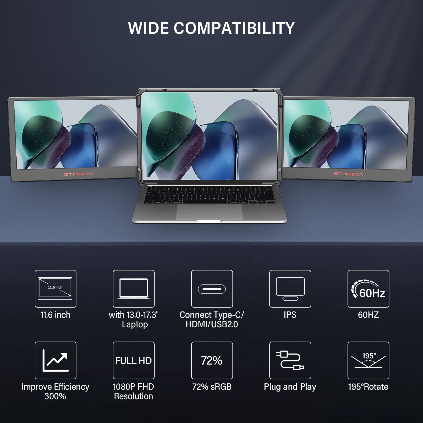 The ACTPRO MateX is compatible with most laptops between 13 to 16 inches using USB-C or HDMI connections.