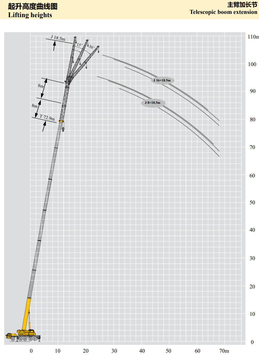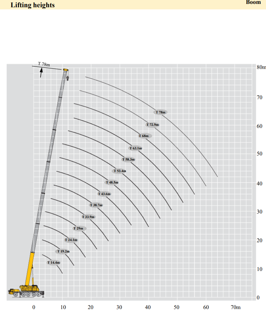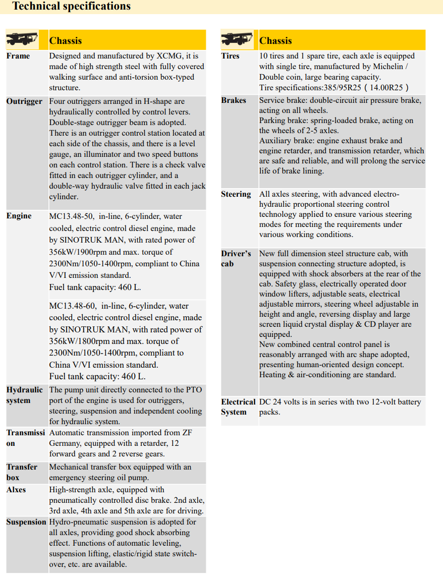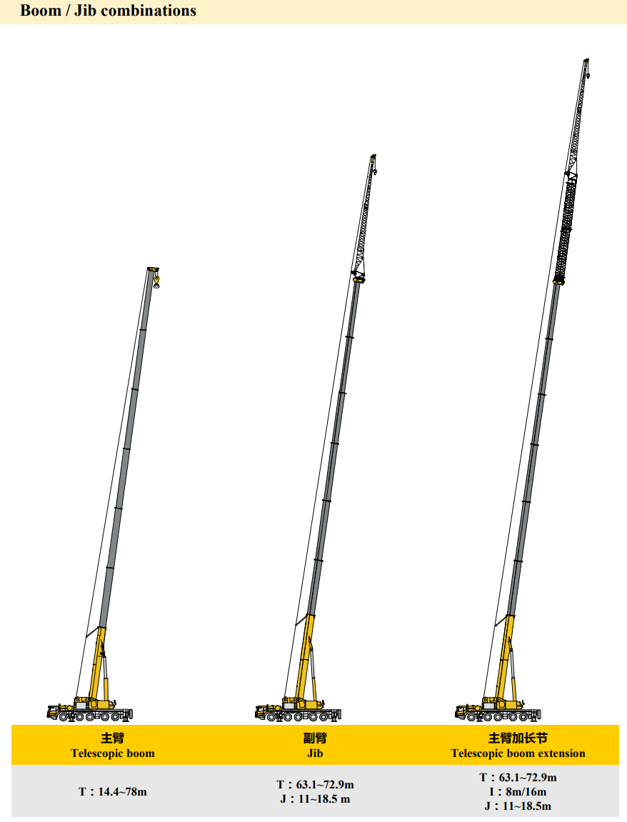 This crane is designed for all-terrain use, making it suitable for construction sites, industrial projects, and infrastructure developments, even in challenging environments.