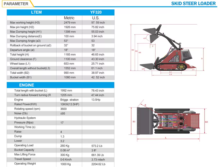 This skid steer loader is equipped with a powerful Euro V / EPA compliant gasoline engine.
