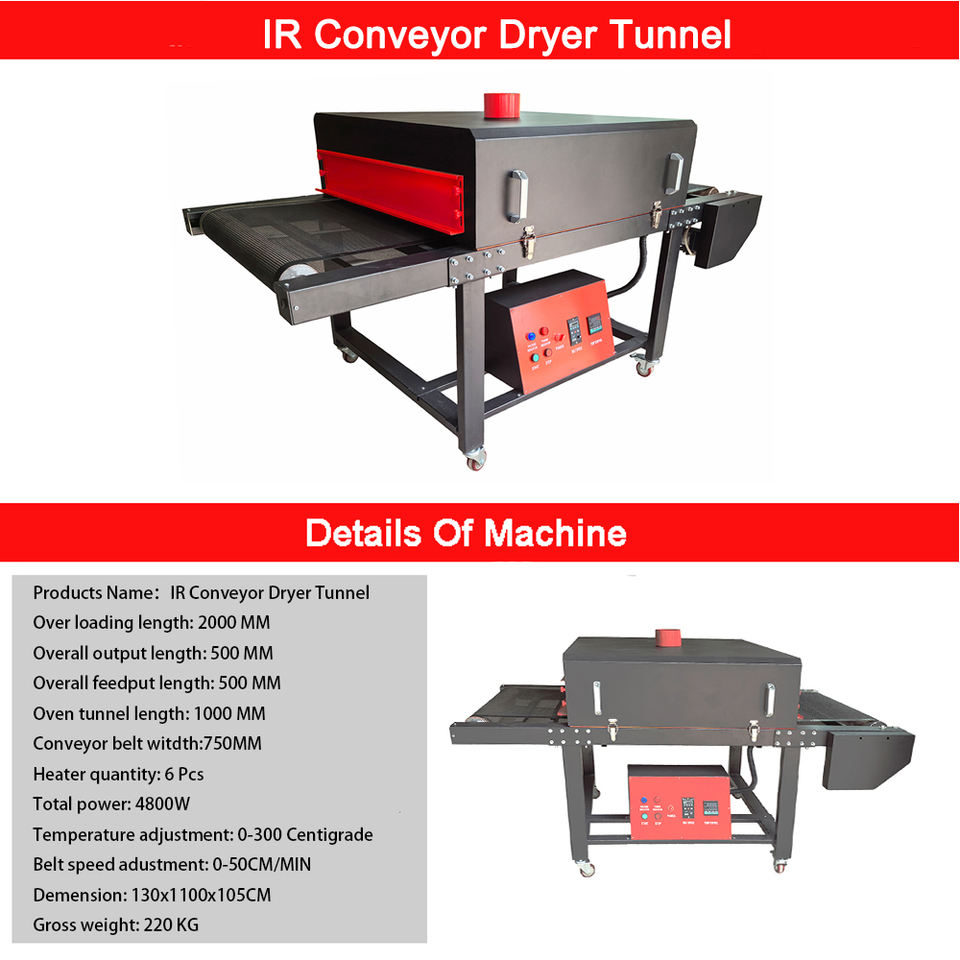 2 Meter Electronic Infrared T Shirts Silk Screen Printing Tunnel Conveyor Belt Dryer Oven Machine