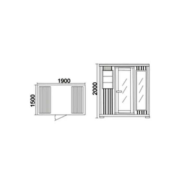 The sauna room measures 1900mm x 1500mm x 2000mm.
