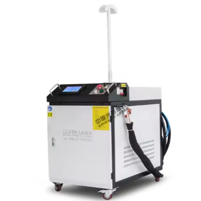 The 2000W Laser Cleaning Machine is designed to clean various surfaces including metal, wood, and stone.