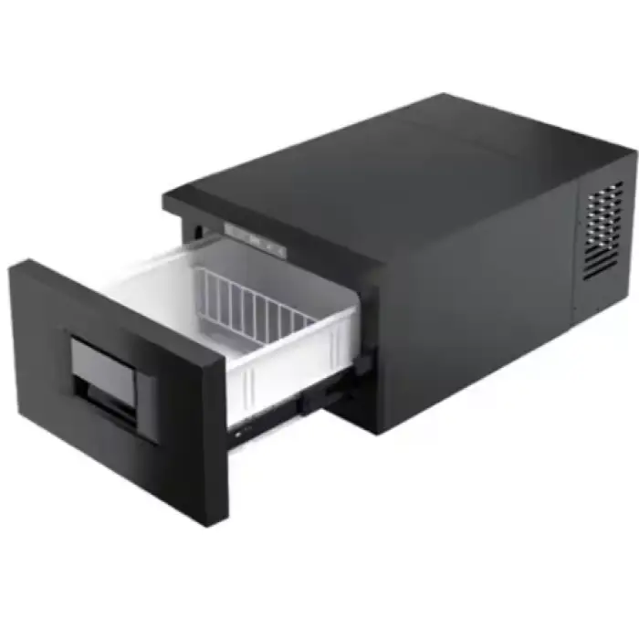 The cooler drawer is powered by a vehicle power supply, compatible with 12V/24V systems.
