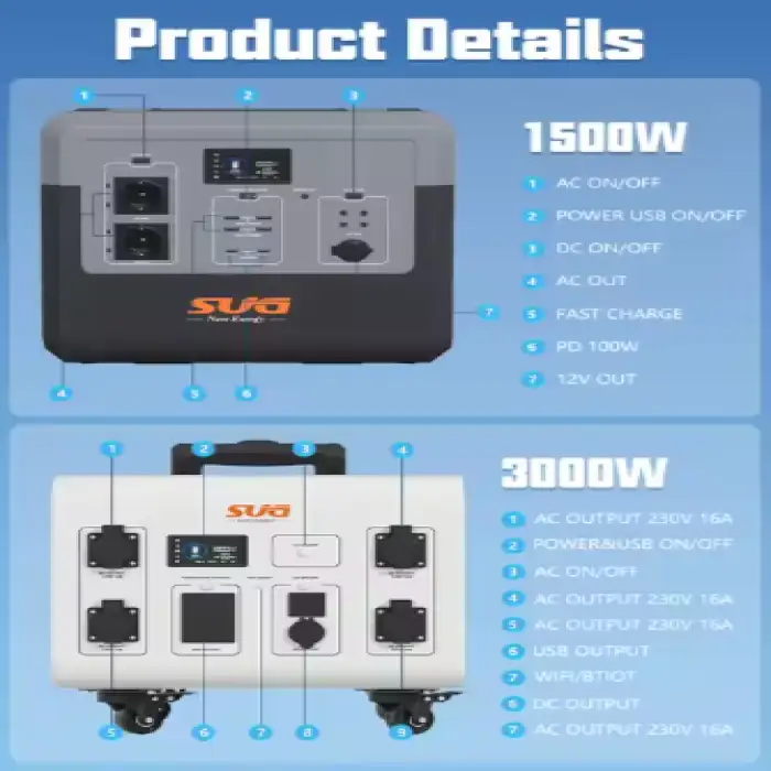 The power station uses a high-capacity LiFePO4 battery, known for its long-lasting power and safety.