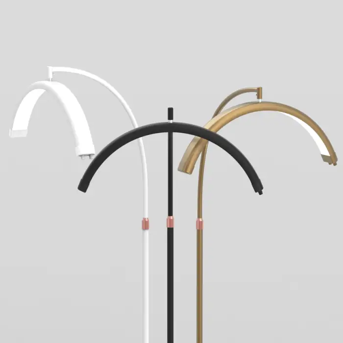The lamp has a sleek semicircle shape, making it aesthetically pleasing and functional.