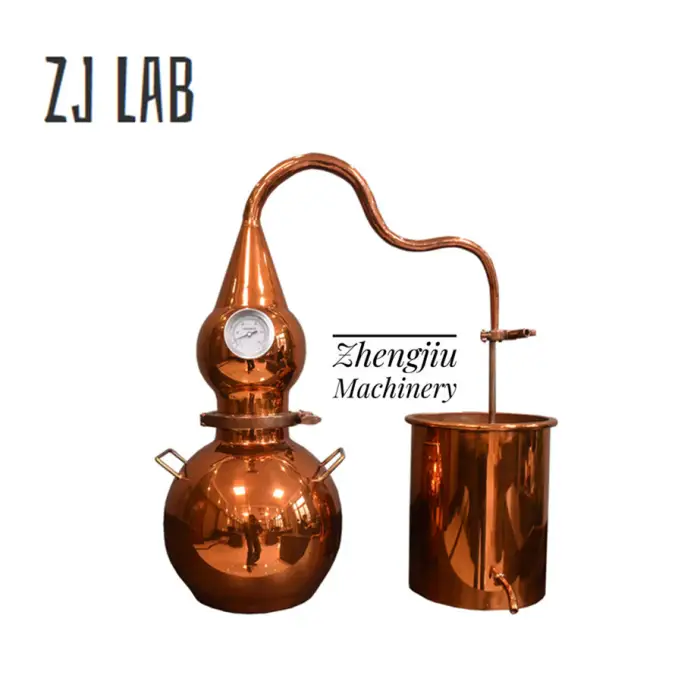 The distiller is crafted from high-quality red copper, ensuring excellent performance and aesthetic appeal.