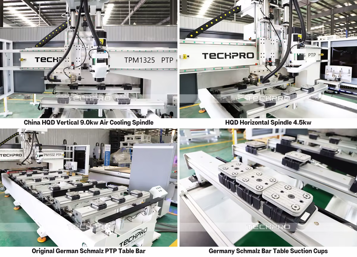 This CNC router features a high-speed 9.0kW air cooling spindle, capable of reaching speeds up to 24000 rpm, enhancing performance.