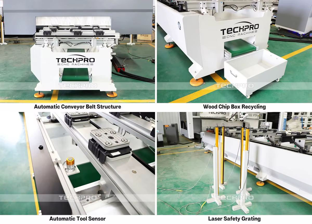 Yes, the machine is equipped with an automatic tool change system, allowing for efficient operation during multiple woodworking tasks.