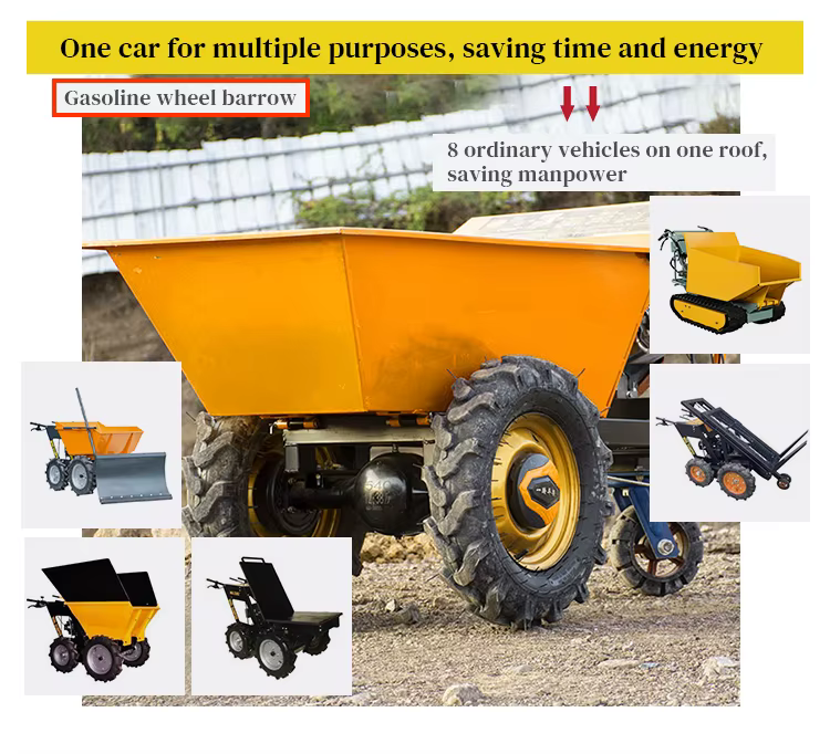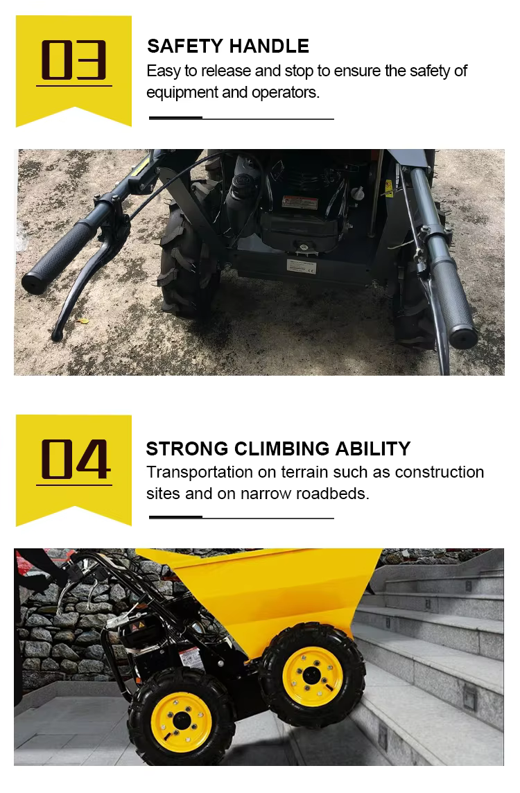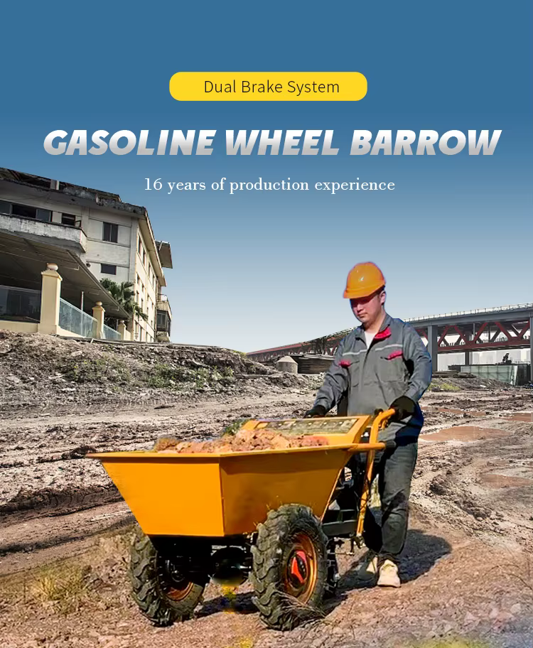 The gasoline engine provides reliable performance, ensuring that the wheelbarrow can handle heavy loads efficiently.