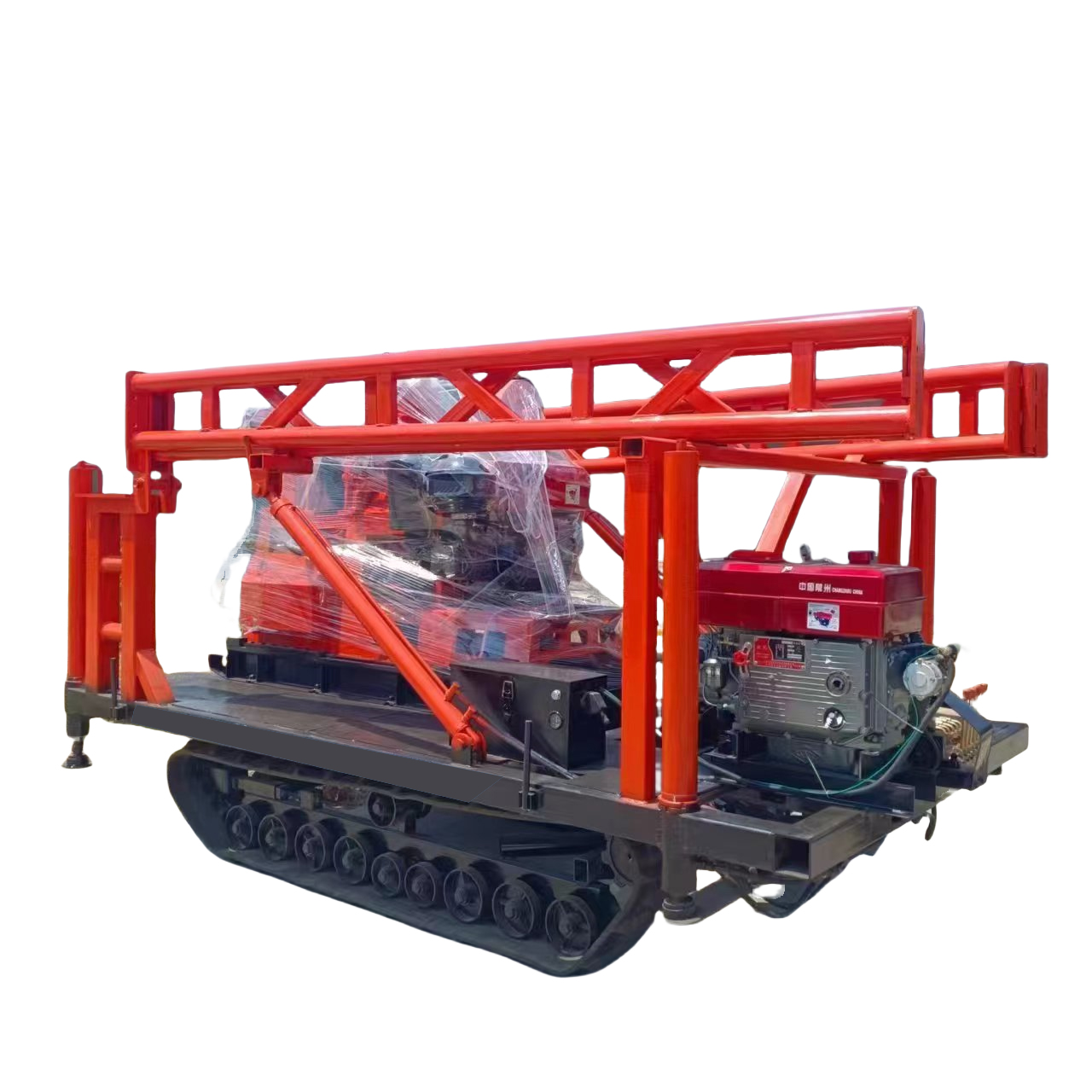 The rig is described as suitable for versatile terrain navigation, but because it lacks crawler tracks you may need an appropriate transport or mounting solution for very soft, steep, or highly uneven ground. It is best suited to sites accessible by truck/trailer or sites where the unit can be placed and stabilized for drilling.