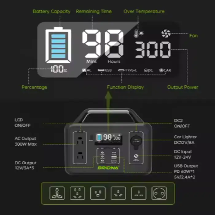 The 300W Portable Power Station has a capacity of 296Wh, powered by a 20Ah lithium-ion battery.