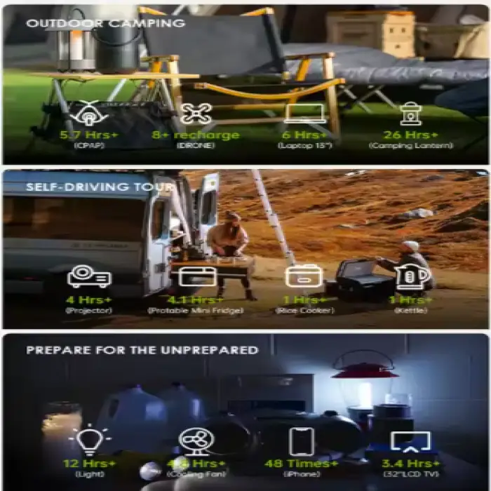 The power station features one TYPE-C and two TYPE-A USB outputs for versatile charging options.