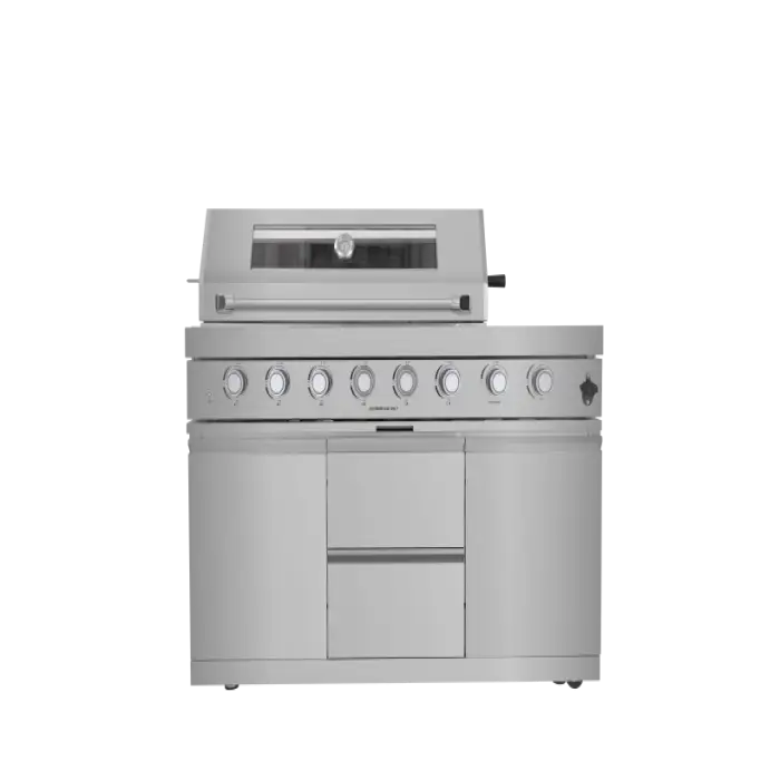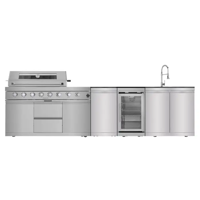 The outdoor kitchen is made from durable 304 stainless steel, ensuring long-lasting performance and resistance to rust and corrosion.