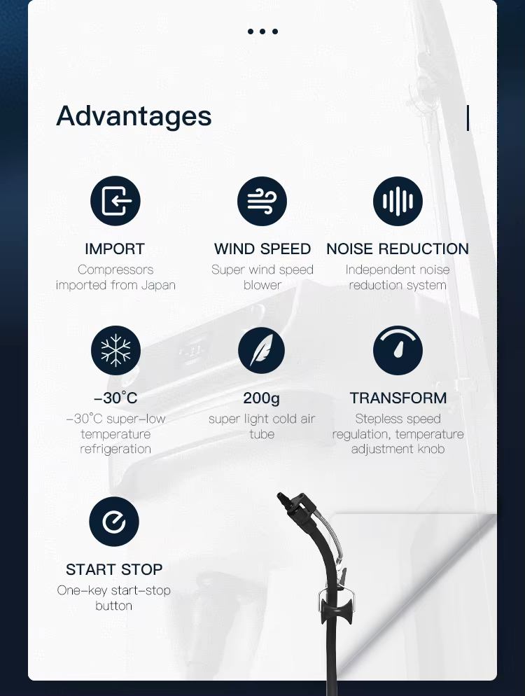 The Zimmer Cryo 6 can reach a lowest temperature of -30°C, providing optimal cooling for various skin treatments.