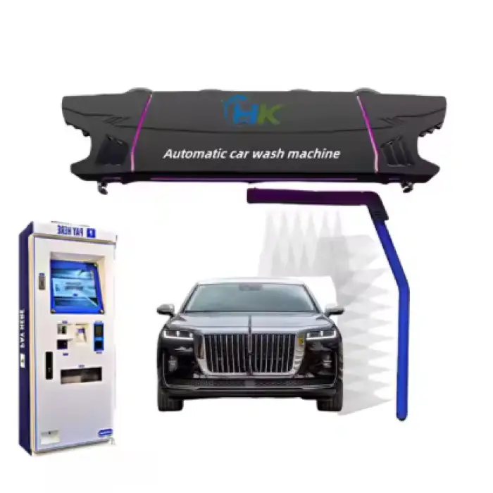 The main feature is its touchless cleaning technology, which ensures a scratch-free wash by using high-pressure water without direct contact with the vehicle surface.