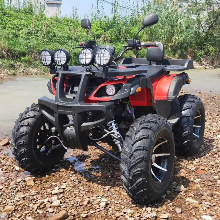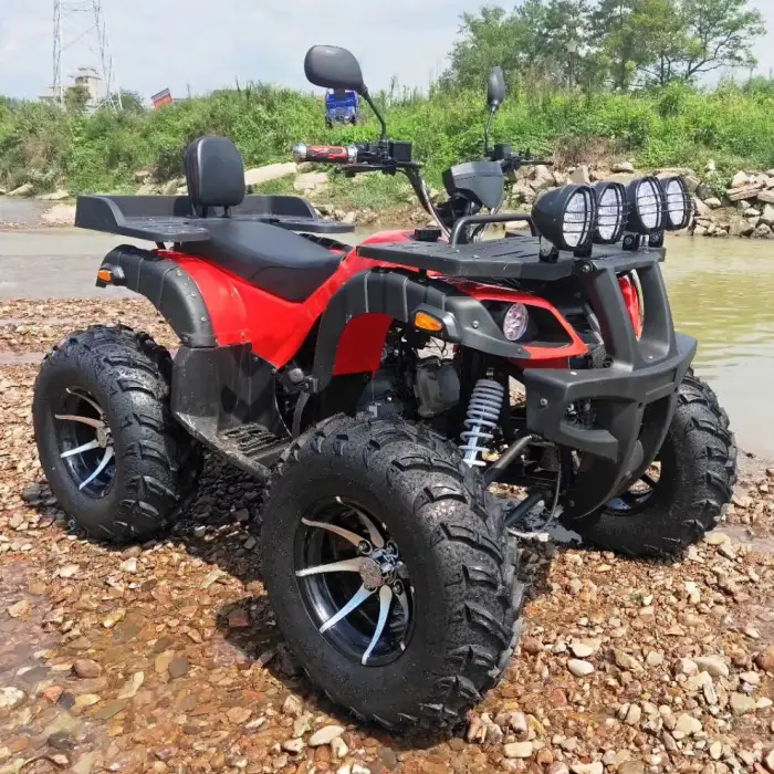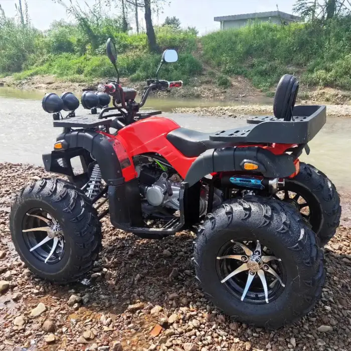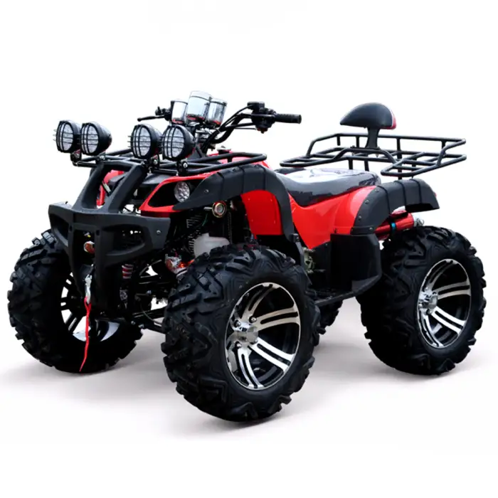 The ATV can use gasoline or diesel depending on the variant, and the fuel tank capacity is up to 10 liters. Confirm which fuel type applies to the specific model you are considering.