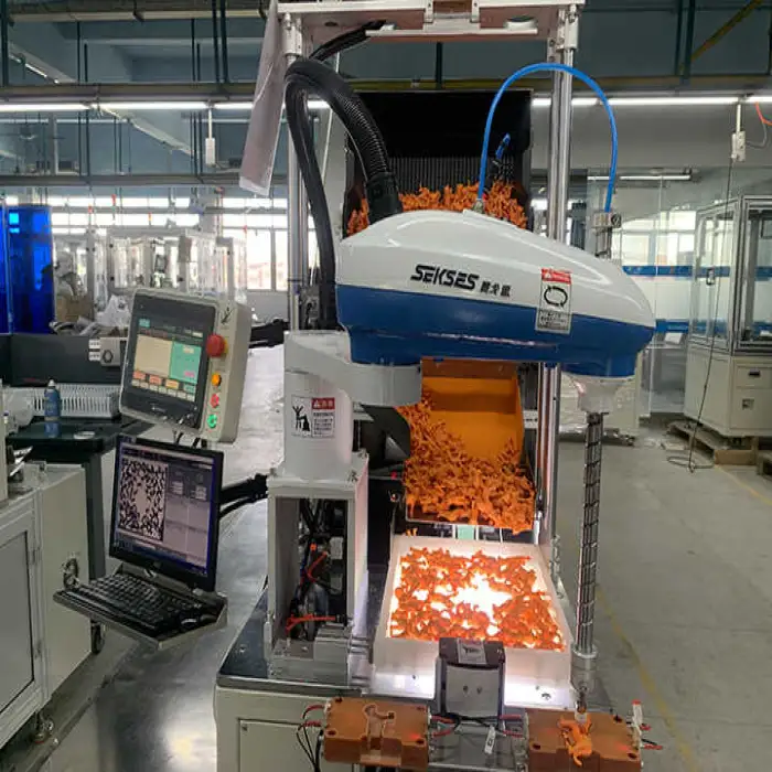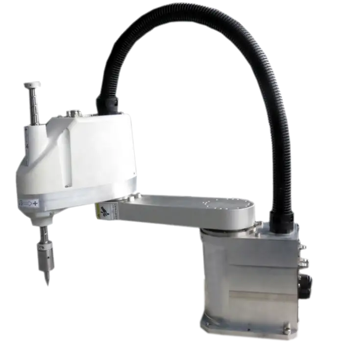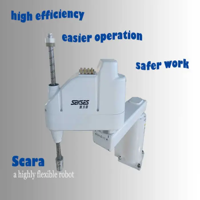 The robot can move, feed, glue, and assemble items quickly and efficiently.