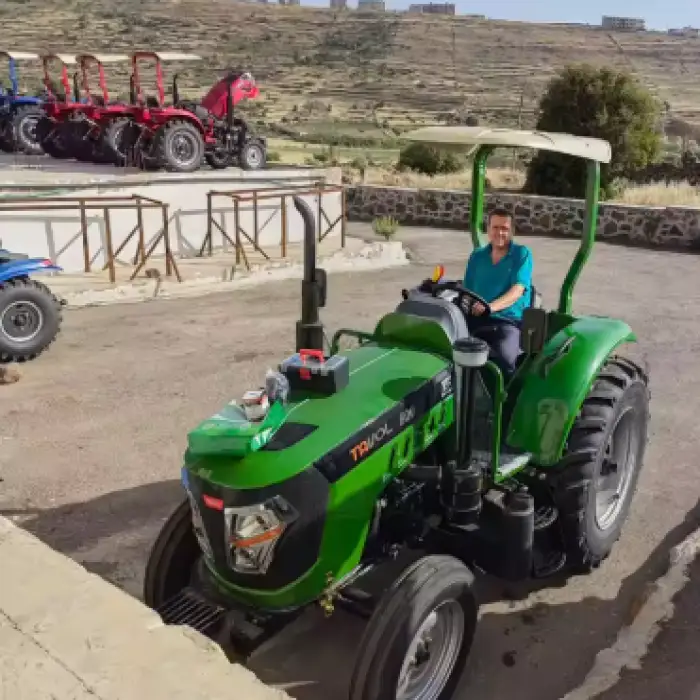 The tractor is equipped with a dual-stage clutch for smooth operation.