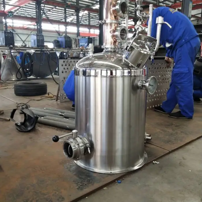 The distiller includes essential accessories such as a fermenter, brewery collecting tanks, and fittings for complete distillation.