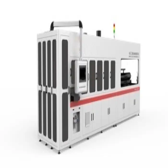 The machine utilizes a high-speed electric cylinder for cell classification handling and positioning, ensuring precise operation.