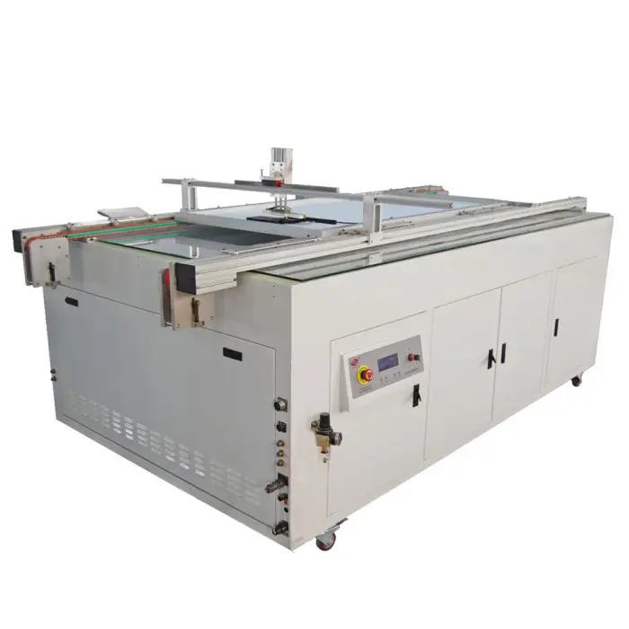 Yes, the machine can be integrated with an automatic layup machine to achieve the composing and locating of solar cell strings on tempered glass.