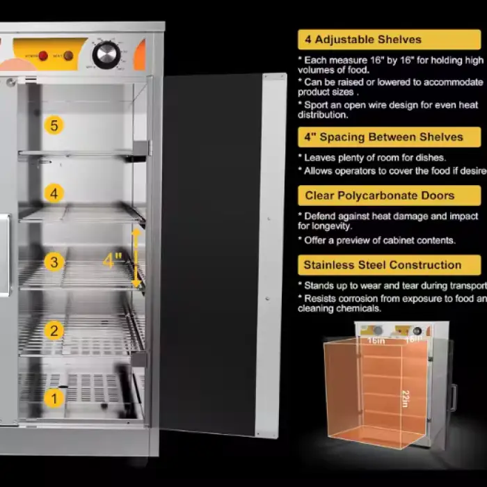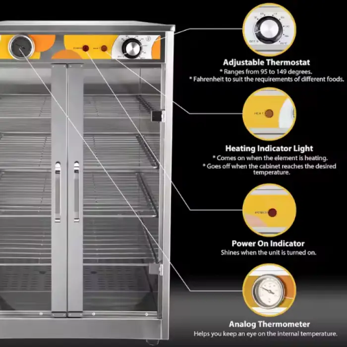 The food warmer uses fan heating for consistent temperature control, ensuring that your food stays warm evenly.