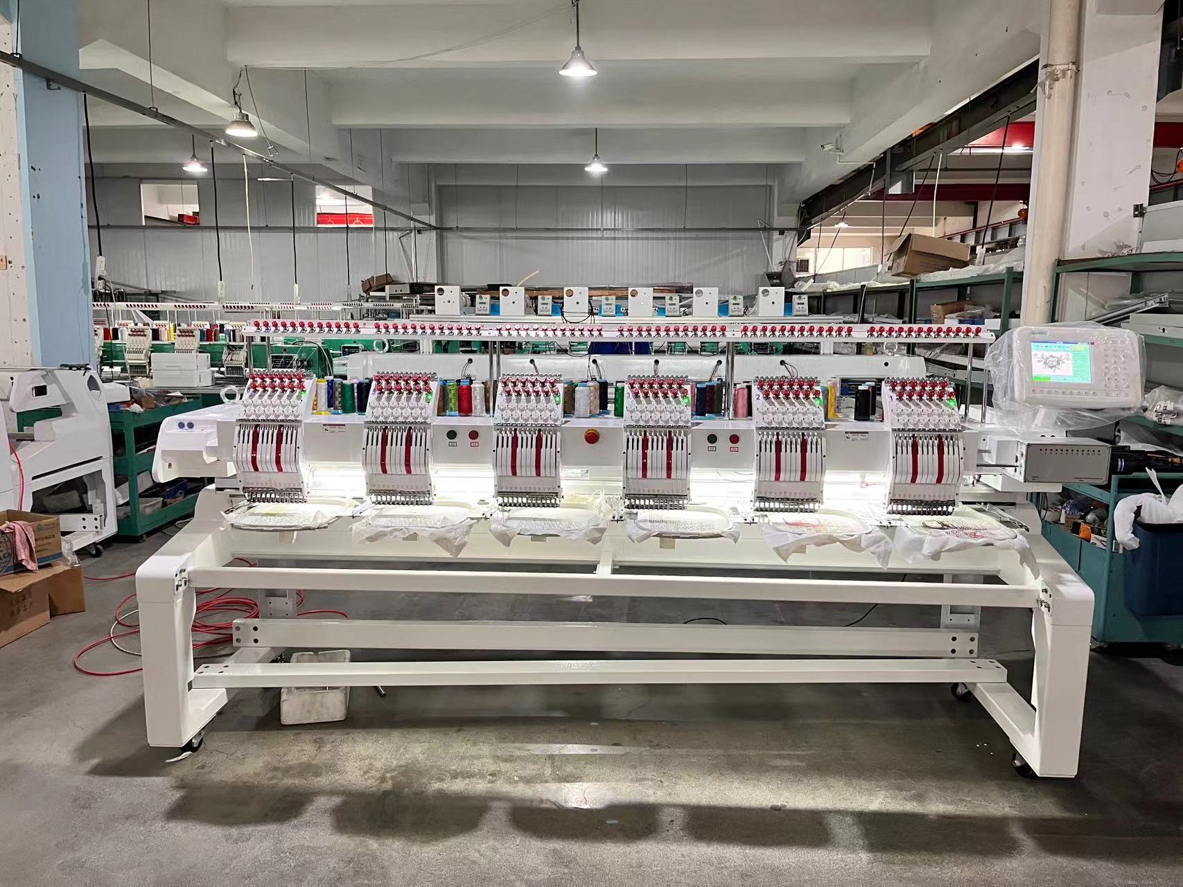 The machine is suitable for flat embroidery, cap embroidery, and finished garments embroidery such as T-shirts.