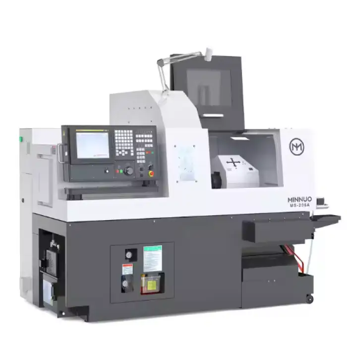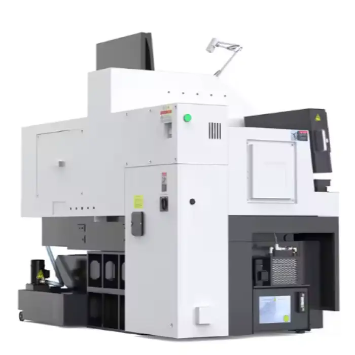 The 6-Axis Swiss Lathe Machine features dual spindles for enhanced productivity.