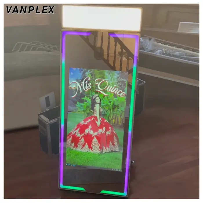 The Magic Mirror Photo Machine features a large 70-inch mirror for stunning reflections.