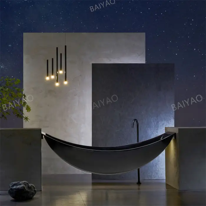 The bathtub features a freestanding installation type, allowing for versatile placement.