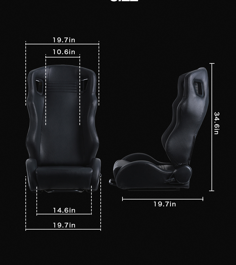 1. What are the dimensions of the Adjustable Luxury Leather Bucket Racing Seats?