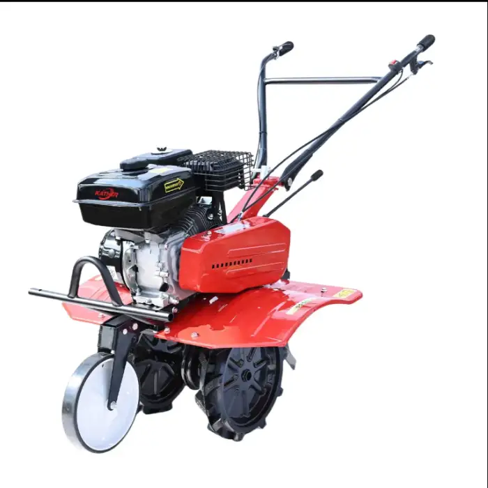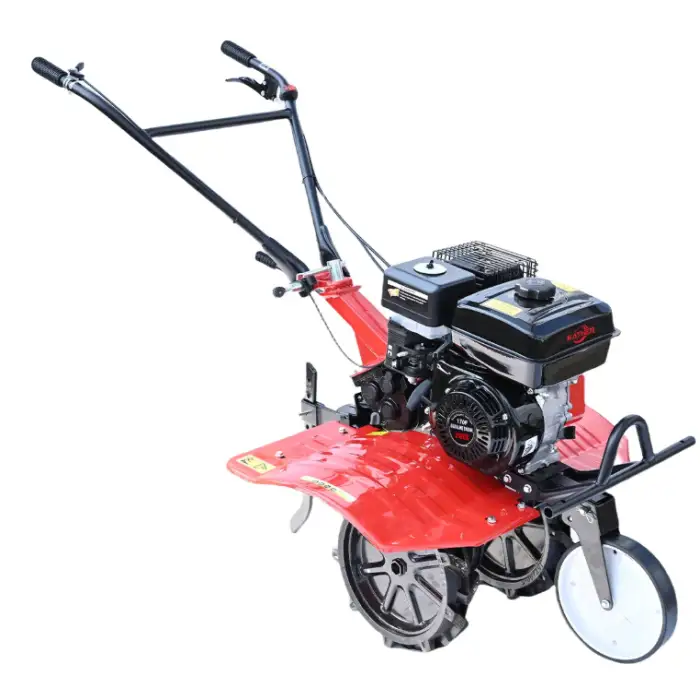 The Agricultural 212cc Mini Power Tiller uses a reliable 4-stroke gasoline engine.