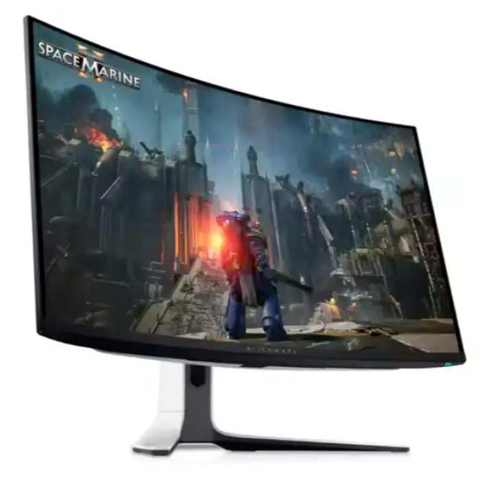The Alien Ware AW3225QF monitor features a stunning 4K resolution, providing exceptional clarity and detail in your games.