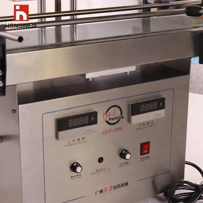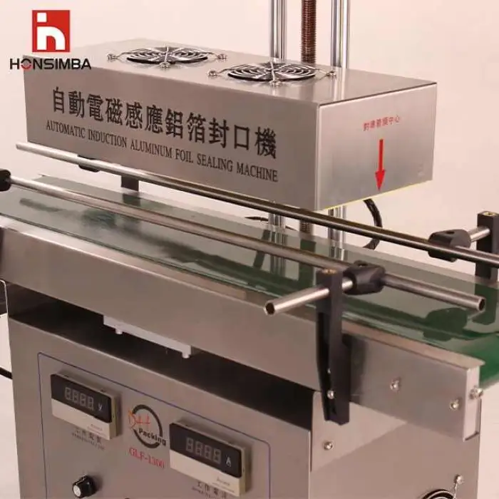 The machine is designed to seal a variety of containers including plastic bottles, glass bottles, and pouches.