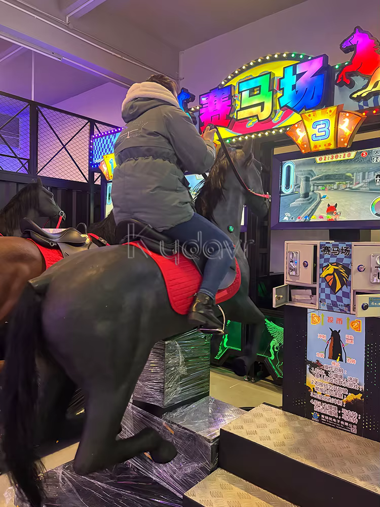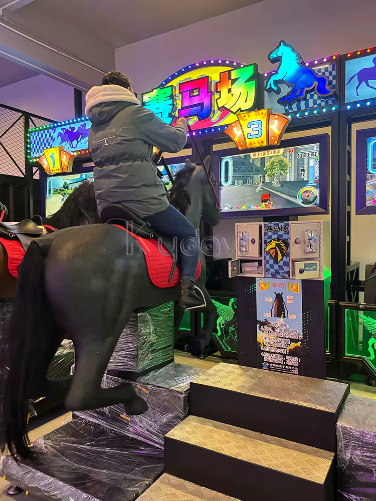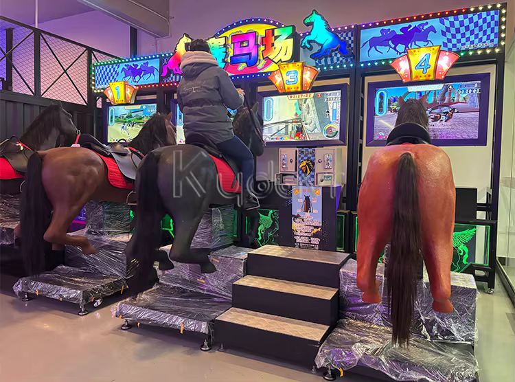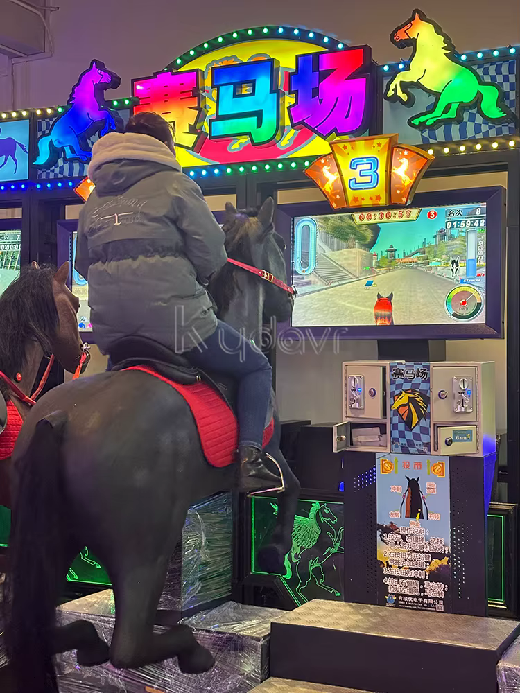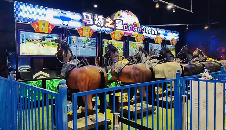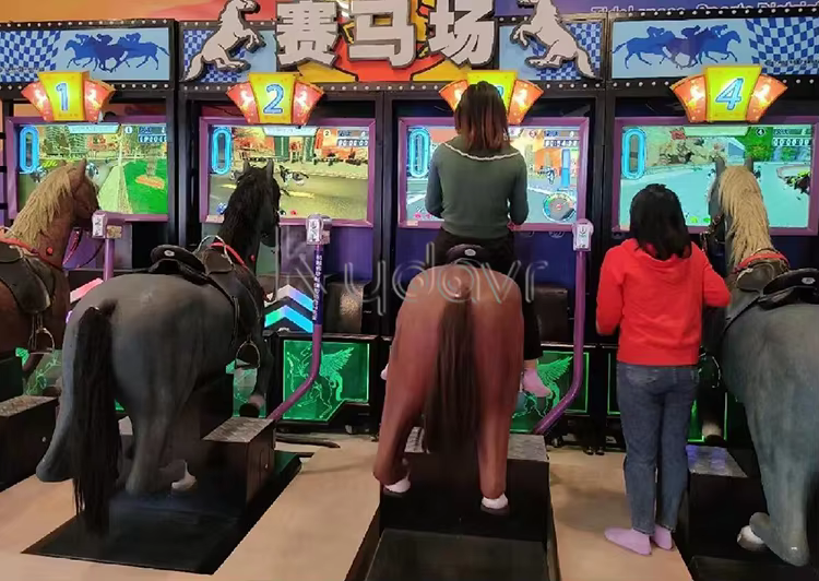 Players insert coins to start the game, select their horses, and compete in races against each other.