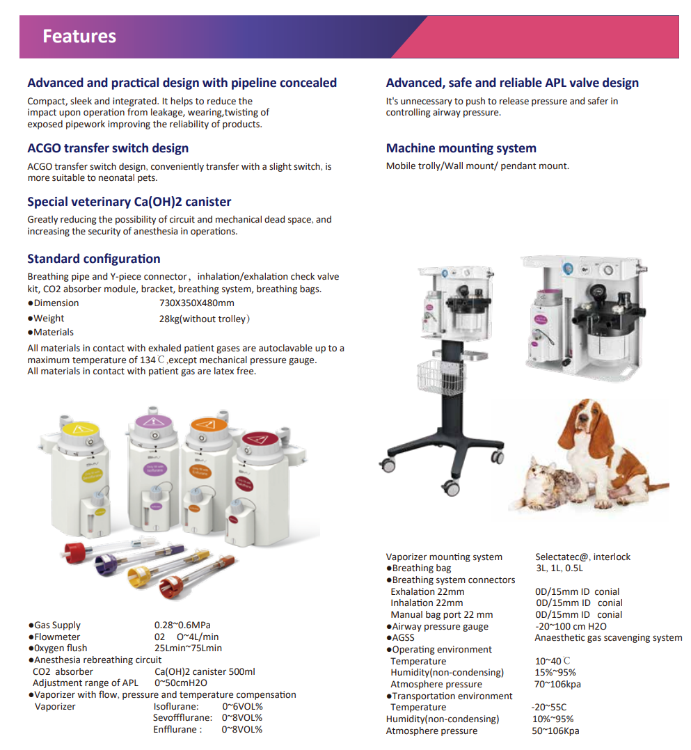 The BAM-7 Pro anesthesia machine is designed for use with a variety of animals, including cats, dogs, and small to medium-sized exotic pets.