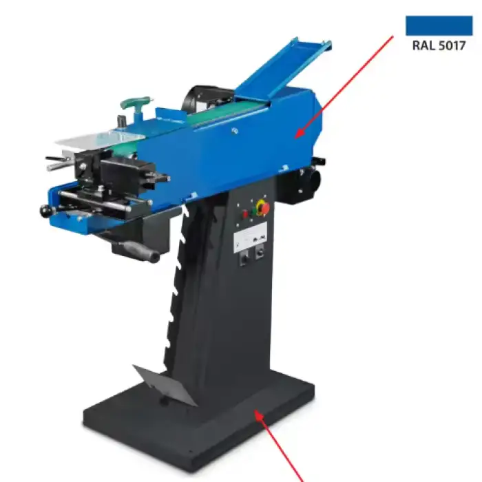 The machine weighs approximately 147 kg, making it a robust yet manageable tool for workshop environments.