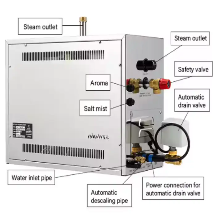 The App & WiFi Bluetooth Turkish 12KW Sauna Steam Bath Generator has an efficient power range of 3-21kw.
