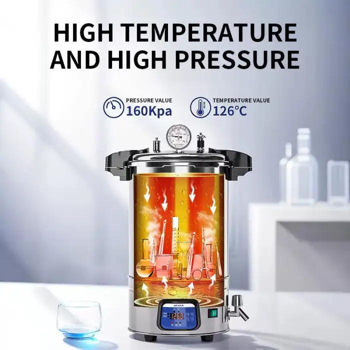 The Autoclave is suitable for food processing and preservation, laboratory equipment sterilization, medical instrument sterilization, cosmetic product sterilization, and any setting requiring effective sterilization.