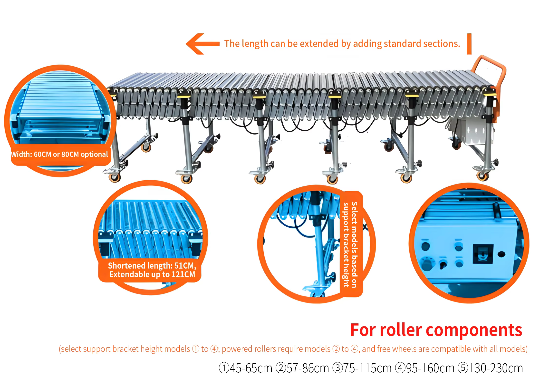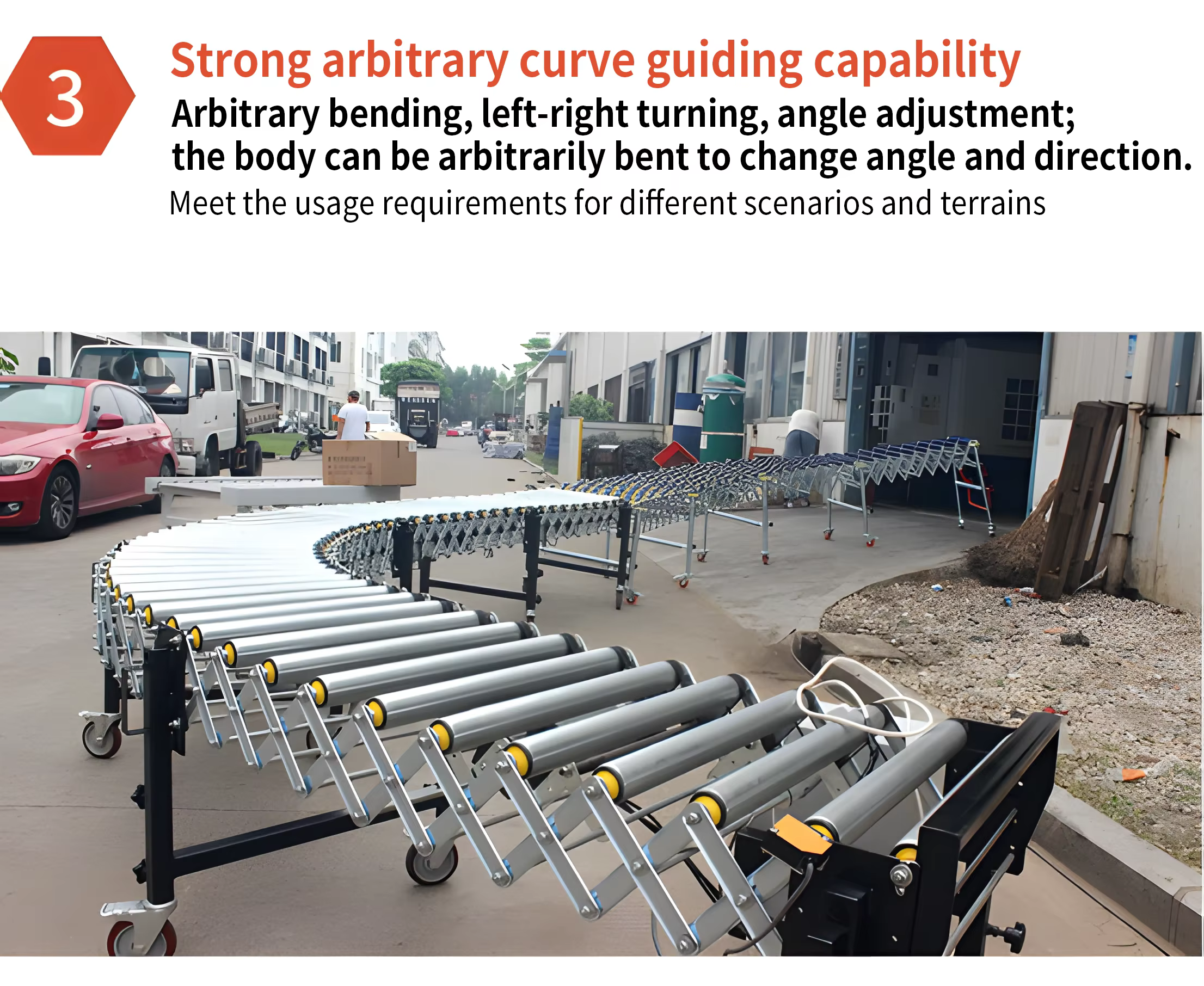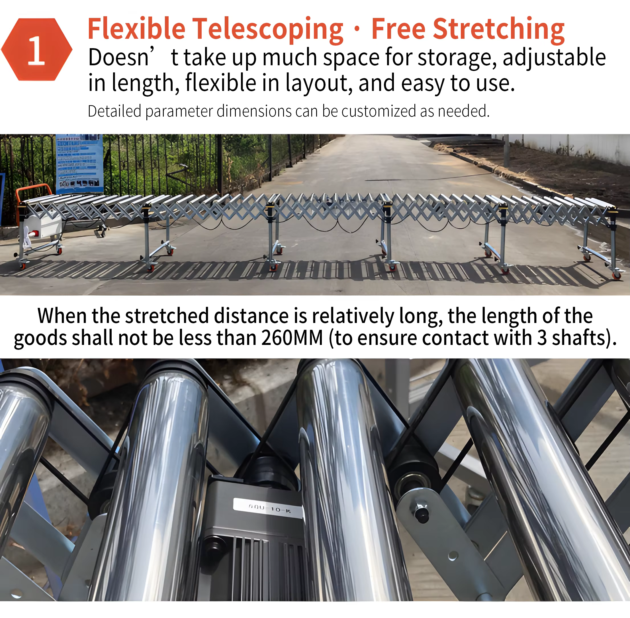 The telescopic feature allows for optimized space usage, making it easier to transport goods and adapt to different production needs.