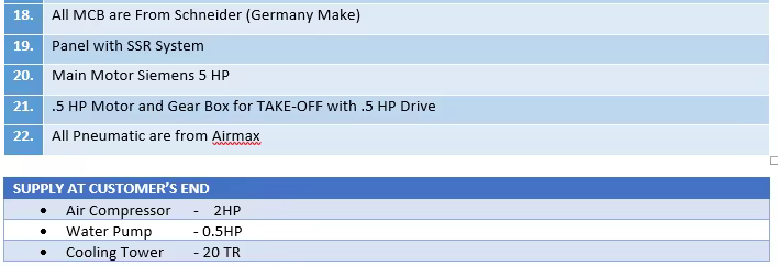 The machine operates at a standard voltage of 440v, but it can be customized according to your request.