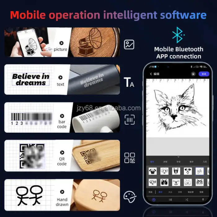 The Automatic Bluetooth Mini Printing Machine uses a fiber laser for engraving and cutting.